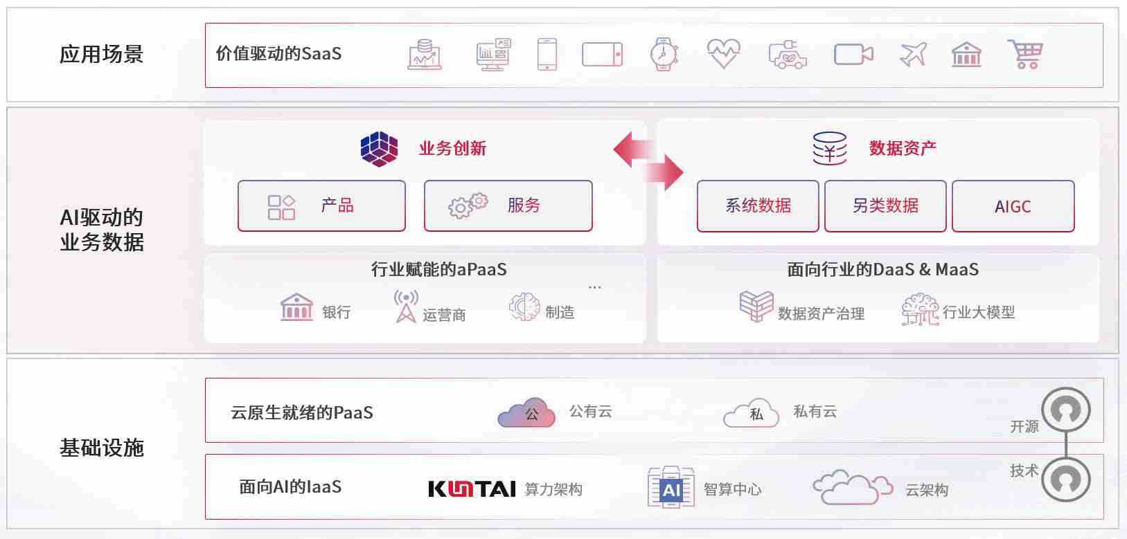 数字时代,,,,围绕企业数字化转型的关键要素,,,C币钱包数码开创性的提出数云融合战略和技术体系框架,,,着力在云原生、、、、数字原生、、、AI原生和信创产业上架构产品和服务能力,,,为处在不同数字化转型阶段的快消零售、、、、汽车、、、、金融、、、、医疗、、政企、、、、教育、、、运营商等行业客户提供泛在的敏捷IT能力和融合的数据驱动能力,,构建跨界融合创新的数字业务场景和新业务模式,,,助力企业级客户建立面向未来的核心能力和竞争优势,,全面推动社会的数字化、、、智能化转型升级。。。