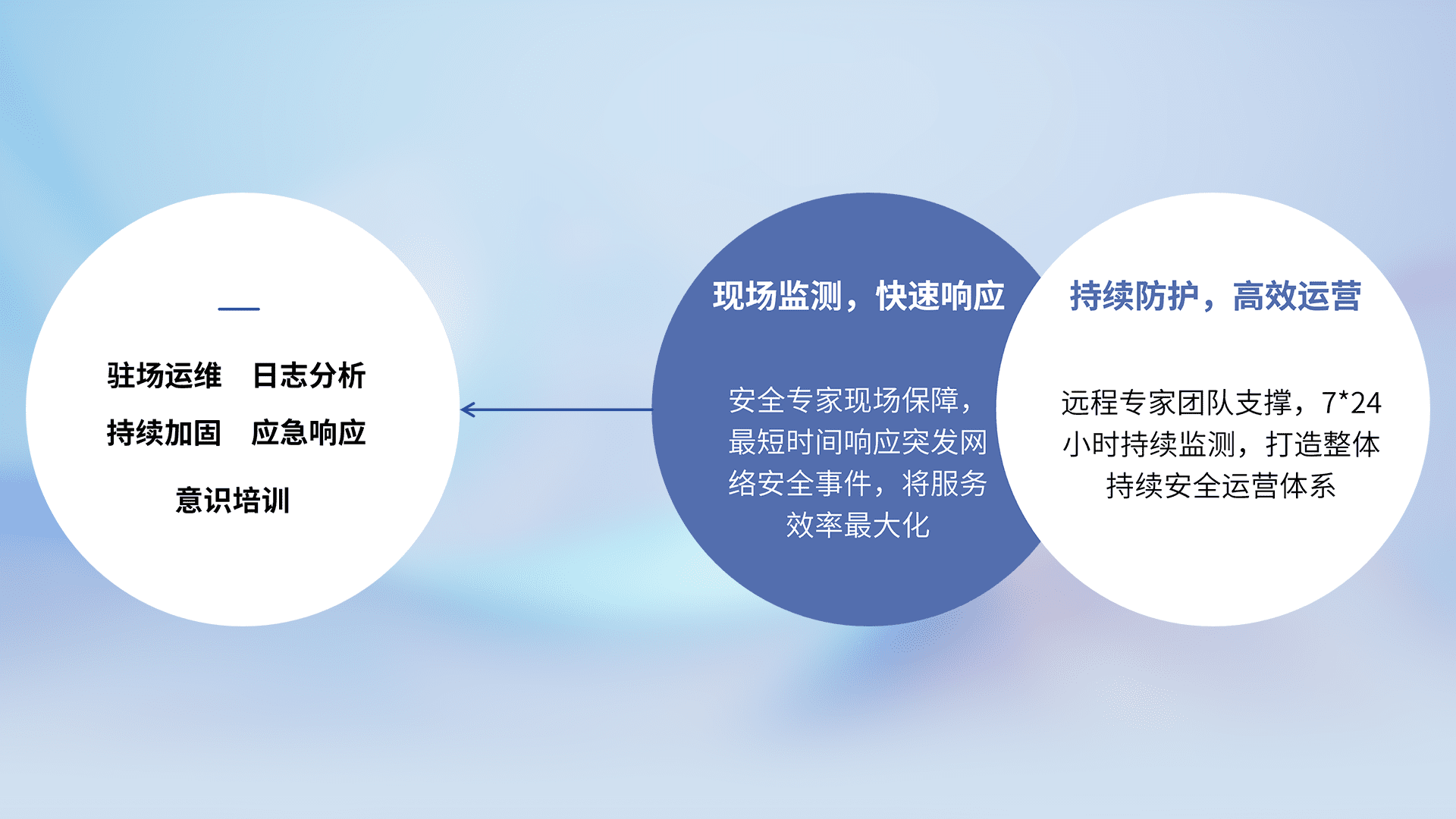 针对客户行业特性,,,提供专属的一站式安全管理服务,,,,帮助客户全面感知网络空间威胁,,通过安全专家的线上、、、线下防护支持,,,实现风险闭环,,,将安全保障常态化,,,,为客户打造常态化安全运维运营服务。。。。
